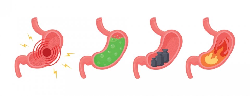 Hazımsızlık (Dispepsi): Karın bölgesinde yaygın bir şekilde hissedilen şişkinlik, yanma, ağrı, yemeğin ardından yaşanan doygunluk hissi gibi belirtilerle ortaya çıkar. Bu belirtiler bazı vakalarda geneldir. Ancak bazı hastalarda tek bir belirti görülebilir. Tedavisinde ilk olarak endoskopi, kolonoskopi ve gaita incelemesi gastroenteroloji uzmanı tarafından yapılır. Ardından ilaç tedavisi uygulanır.