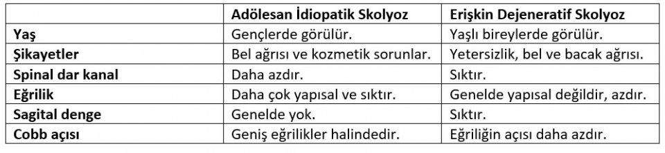 Adölesan İdiopatik Skolyoz ile Erişkin Dejeneratif Skolyoz Arasındaki Farklar Nelerdir?