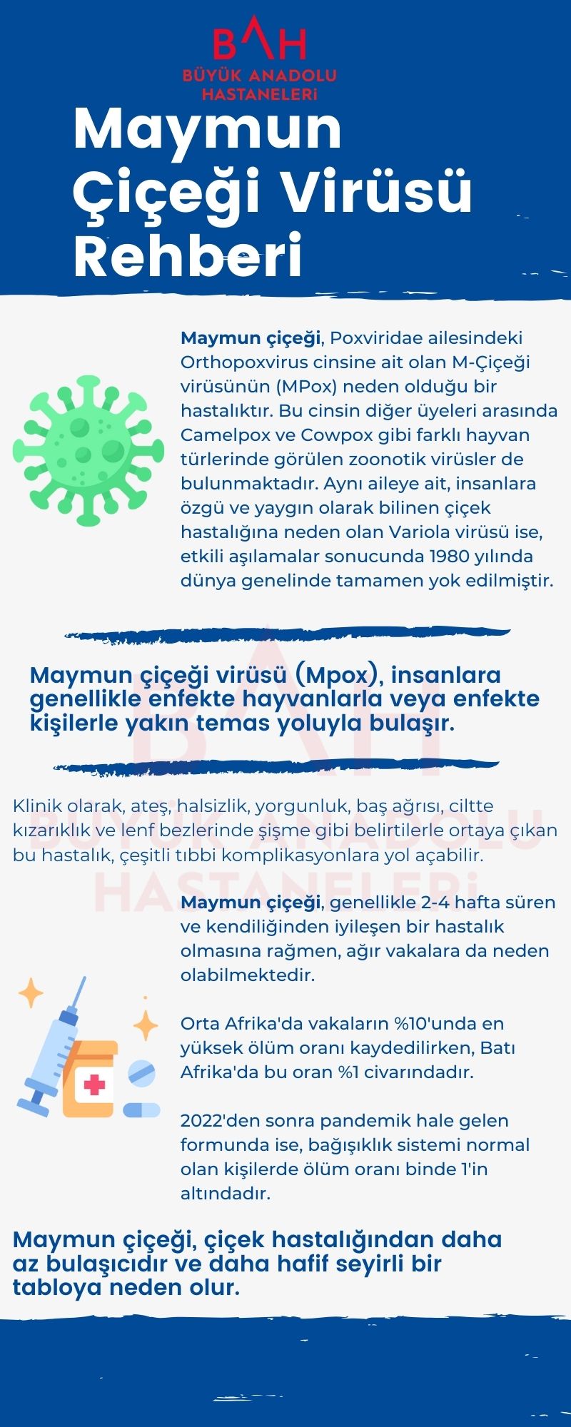 Maymun çiçeği (monkeypox) son dönemde artan vakalarla birlikte dünya genelinde dikkat çeken bir sağlık konusu haline gelmiştir. Nadir görülen ancak ciddi sonuçlar doğurabilen virüs, başta Afrika kıtasında yaygın olmasına rağmen, küreselleşen dünyada farklı bölgelerde de ortaya çıkmaktadır. Maymun Çiçeği virüsü özellikle belirtilerinin diğer hastalıklarla karıştırılabilmesi nedeniyle erken teşhis ve korunma önlemlerinin önemini artırmaktadır. Maymun çiçeği hakkında bilmeniz gereken temel bilgilerden, korunma yöntemlerine ve güncel tedavi seçeneklerine kadar bilmeniz gerekenleri M-Çiçeği (Mpox) Rehberi ile sizler için derledik.