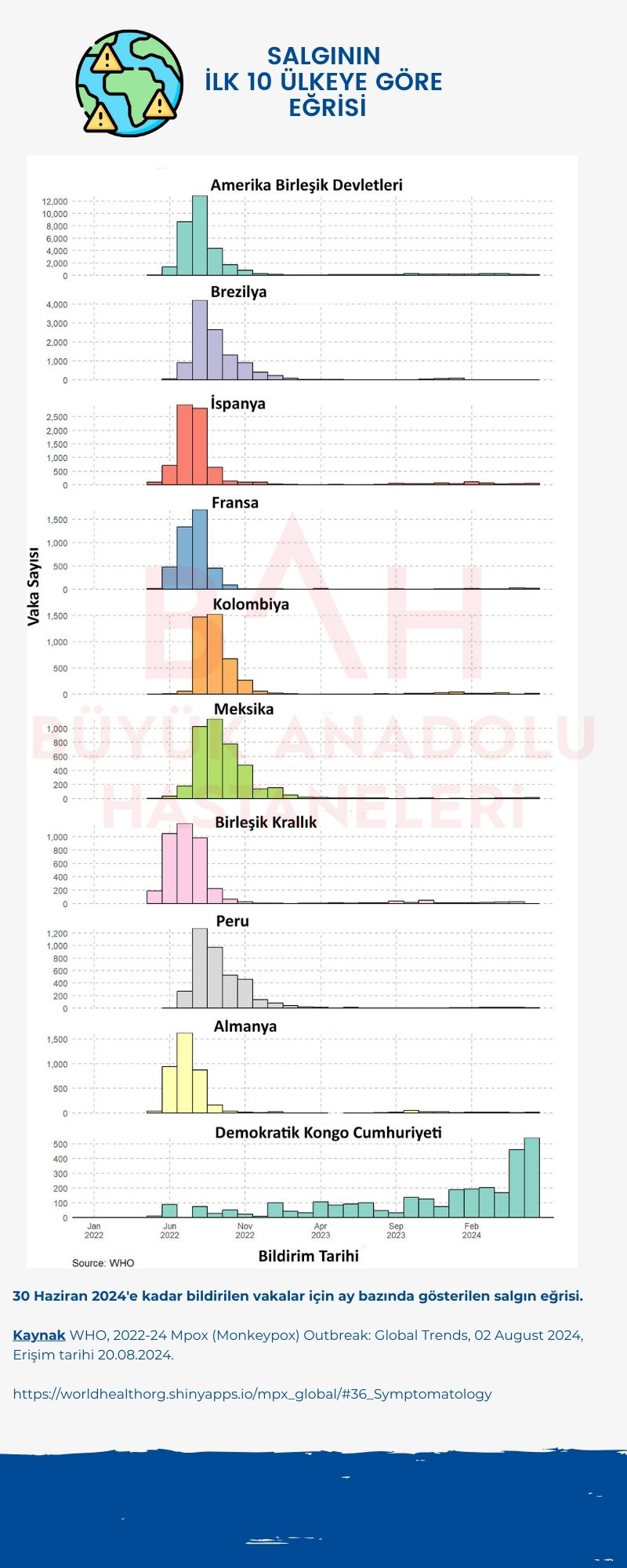 Maymun Çiçeği Salgınının Global Durumu: İlk 10 Ülkeye Göre Vaka Eğrisi
